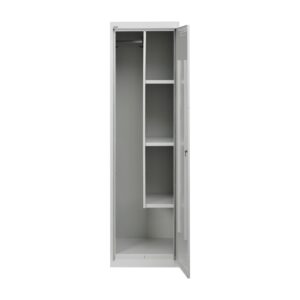 Особенности: Шкаф имеет вентиляционные отверстия. Выполнен из металла, устойчив к повреждениям и царапинам. За счет высокой прочности прослужит долгое время. Закрывается на замок, что позволяет ограничить доступ к содержимому. Две перекладины и крючки — для хранения одежды. Верхняя полка удобна для размещения головных уборов, шарфов и перчаток. Конструкция шкафов позволяет скреплять их между собой. Возможность установки дверей с односторонним открыванием и с распашным (по желанию заказчик изменяет направление открывания дверей). Шкаф полностью поставляется в разобранном виде в жёсткой пятислойной гофрокартонной упаковке. Процесс сборки занимает не более 30 минут, при помощи заклепок (саморезы и зацепы по согласованию).